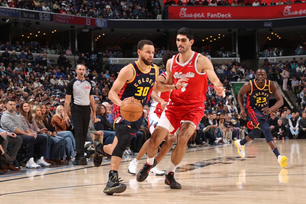 勇士134-125力克灰熊,库里12记三分轰52+10+8,莫兰特36+6.